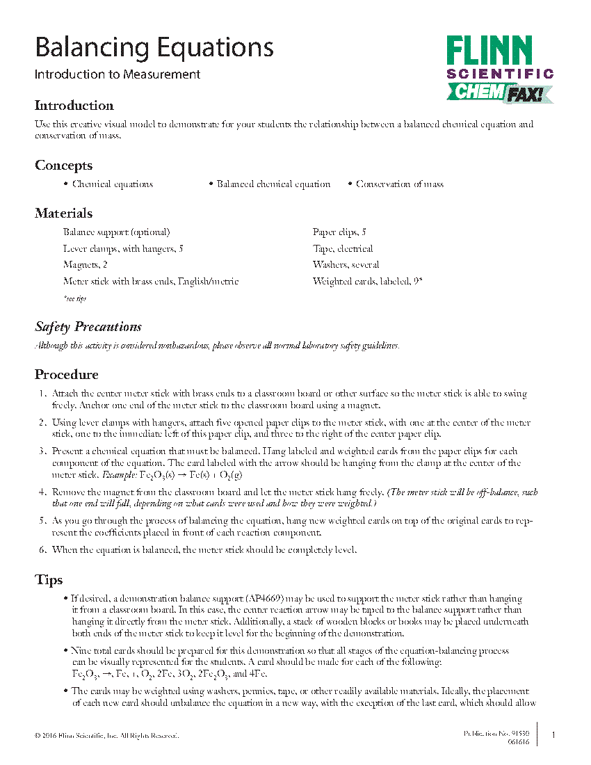 An equation is balanced when the same number of each element is represented on the reactant and product sides. While balancing the reactions, the number of atoms on each side is presented as visual, histogram, and numerical data. Equations must be balanced to accurately reflect the law of conservation of matter. Answers to chemistry end of chapter exercises. Synthesis, decomposition, single replacement, double replacement, and combustion.